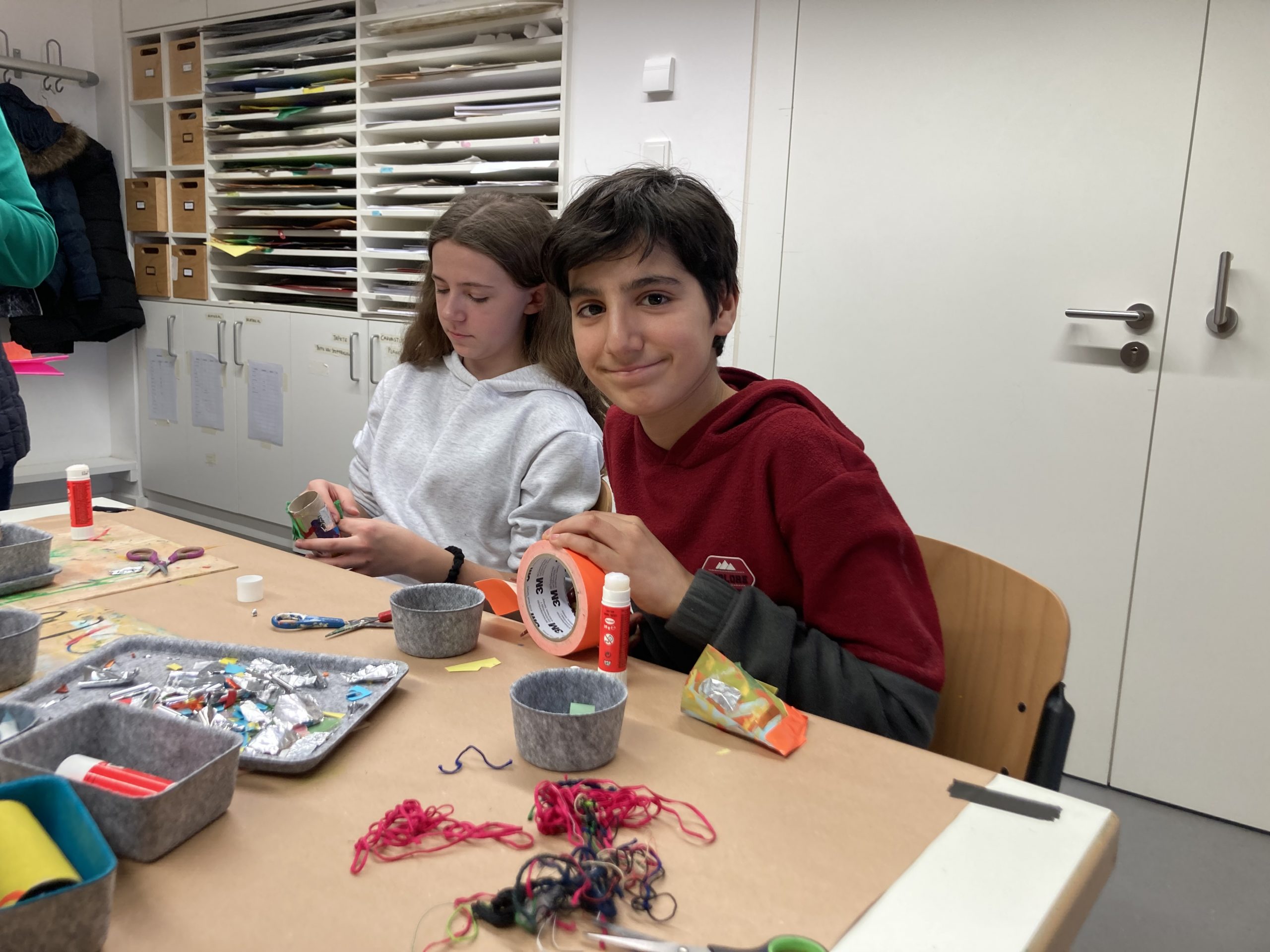 Nach der Führung bastelten wir eigene „Boom-Makers“. In der Schule haben wir sie zu einem beweglichen Gesamtkunstwerk zusammengefügt.