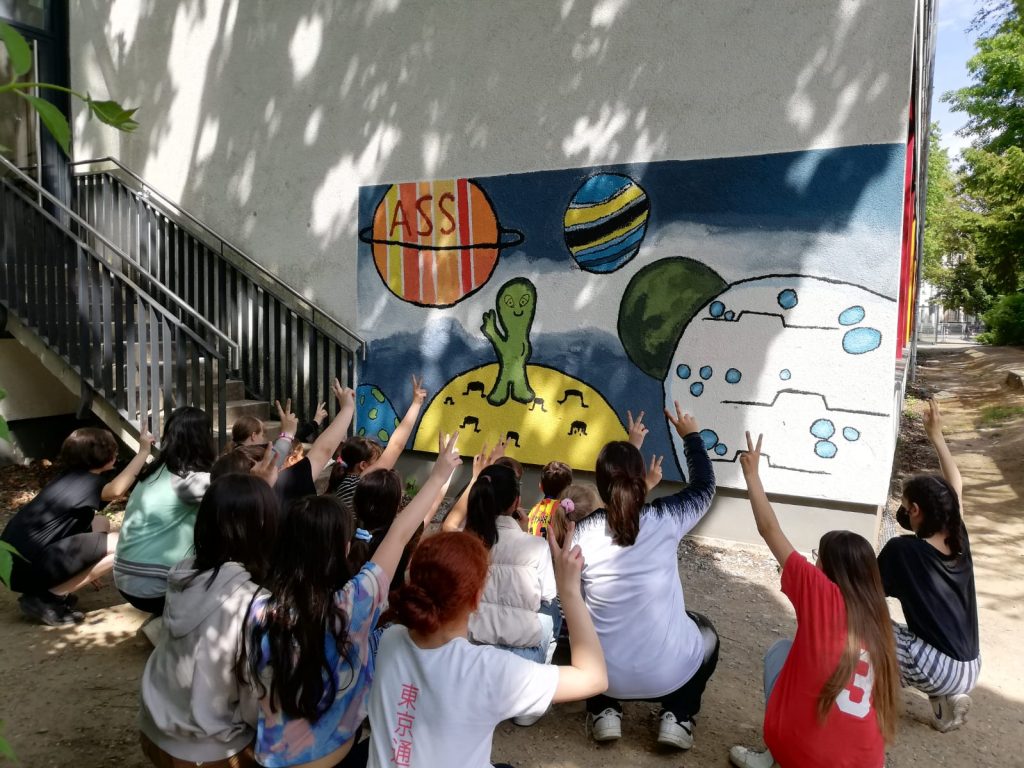 Alle Besucher*innen sind gerne dazu eingeladen, sich das von den Schüler*innen mit sehr viel Mühe gestaltete Wandbild anzuschauen.