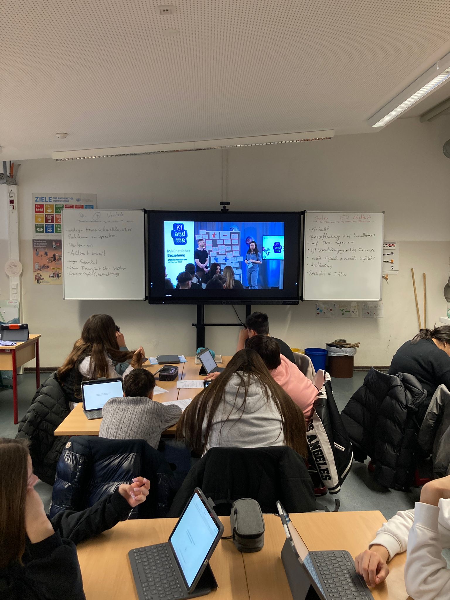 Solche und andere Aussagen nahm die 7b um ihren Klassenlehrer Herrn Reims zum Anlass, an der klicksafe Schulstunde zum Thema „KI and me. In künstlicher Beziehung.“ mit über 50.000 Schülerinnen und Schülern am Safer Internet Day 2026 teilzunehmen.